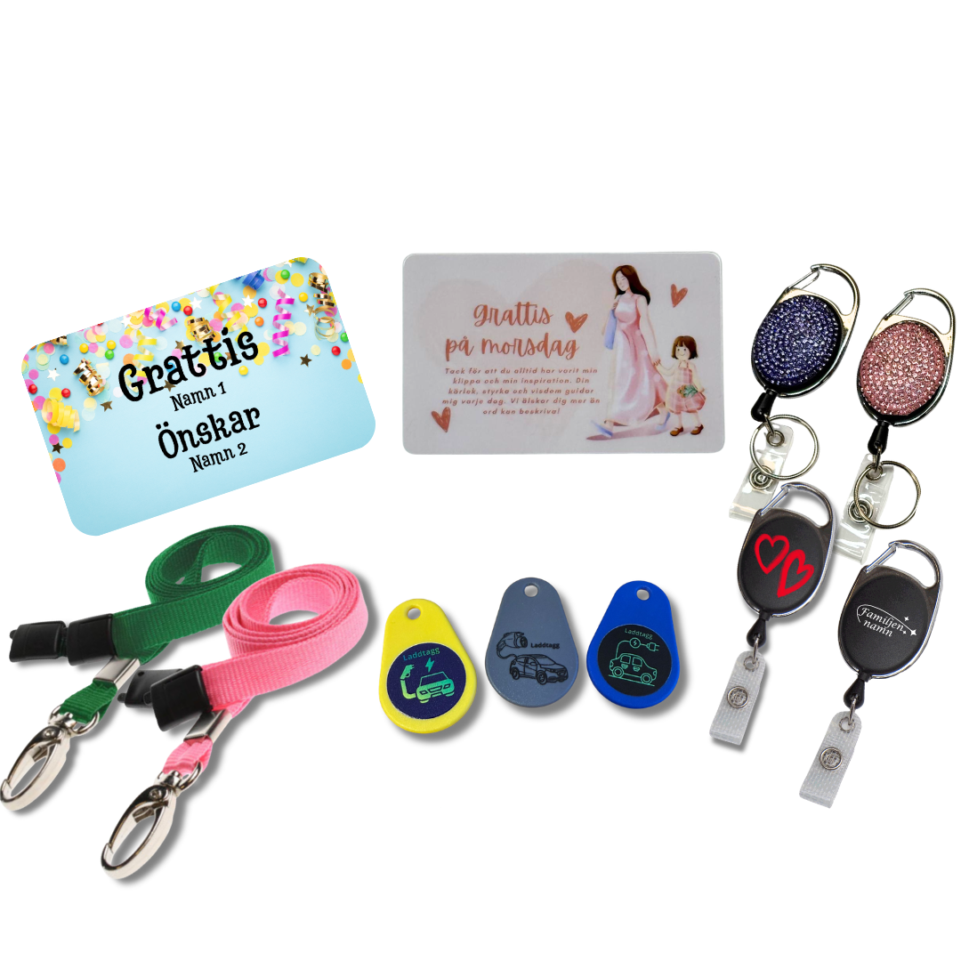 Printello erbjuder plastkort, tryckta kort, jojos och tillbehör för privatpersoner som vill skapa något personligt, unikt och hållbart. Oavsett om det gäller ett kort till jobbet, en tagg till nyckelknippan eller en personlig gåva kan du enkelt designa och beställa produkter med eget tryck.