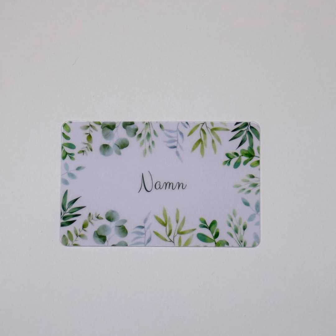 Varje kort trycks endast med gästens namn, i en noggrant framtagen bakgrundsdesign skapad av Printello.