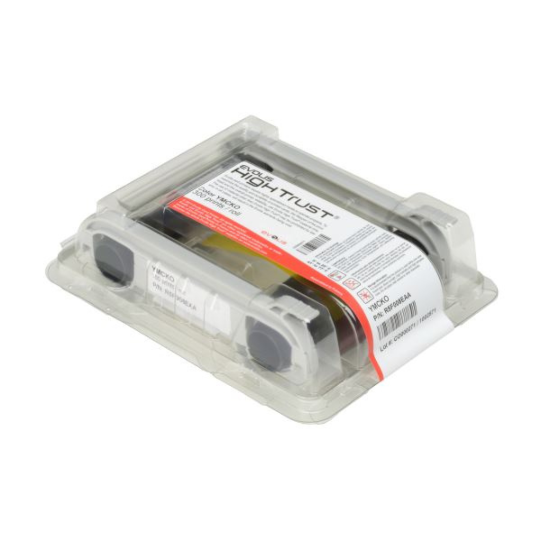 Evolis R5F008EAA YMCKO-färgband är ett originalband utvecklat för Evolis Primacy-kortskrivare och levererar upp till 300 utskrifter i fotokvalitet.
