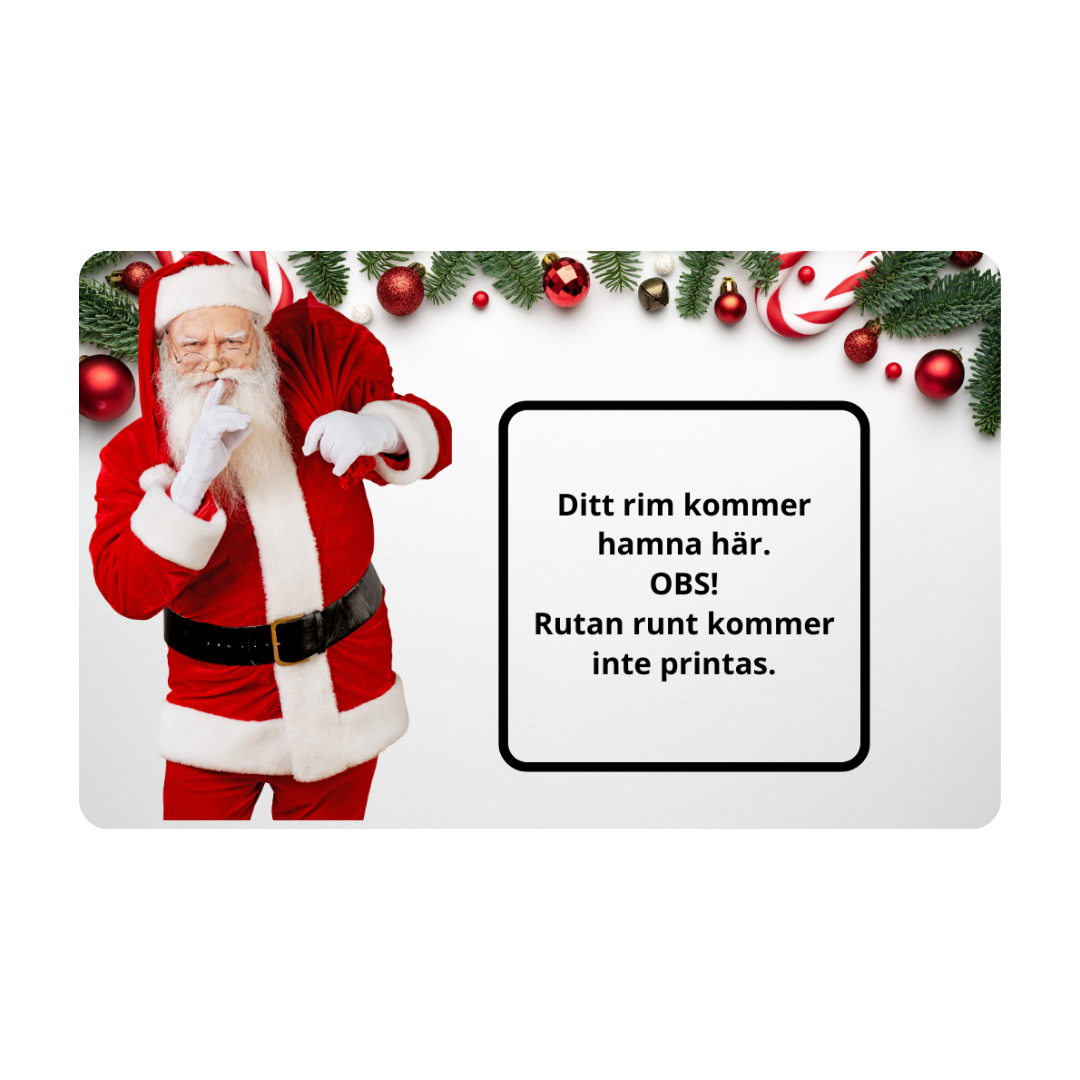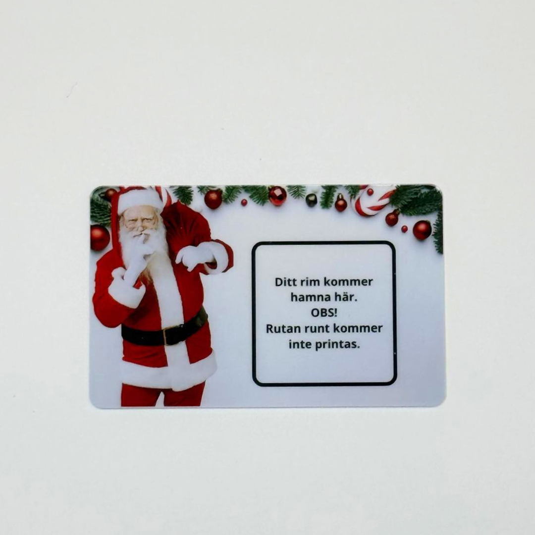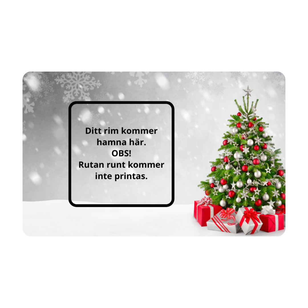Ditt personliga rim trycks direkt på kortet, vilket gör varje julkort helt unikt, hållbart och minnesvärt.